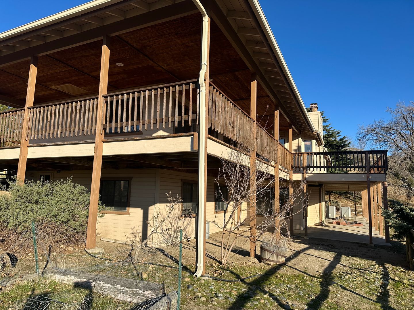 3 bedrooms, 1 full bathroom, (2) 3/4 bathroom, and (1) half bathroom at nearly 3000 sq ft custom home with panoramic mountain views. Over 4 acres with lots of privacy. Very spacious home with a living space, great room, large kitchen, large laundry room and HUGE bonus room with full bathroom that can be used as a mother-in-law quarters, game room, library, etc.. Gorgeous wraparound deck and lower covered patio. 3 car garage, wood burning fireplace, gas fireplace, central AC and heating on natural gas and so much more!