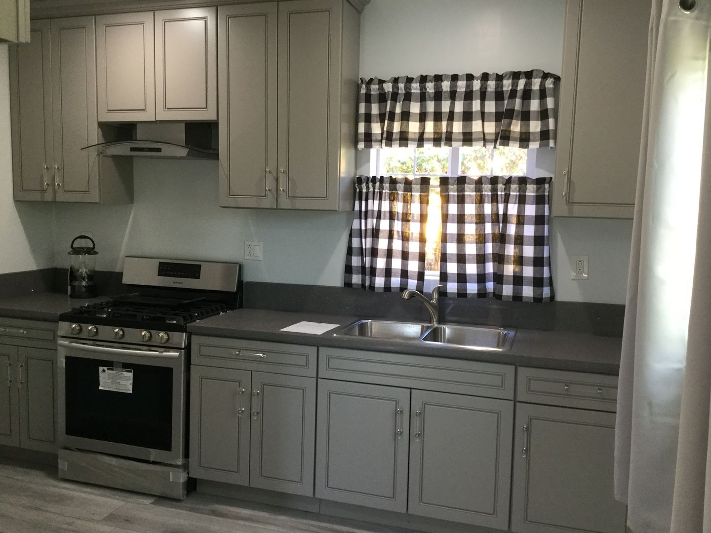 Brand new laminate wood flooring, fresh paint, new wall air conditioner. large windows with wonderful natural lighting and mirror closet doors. Kitchen has brand new counter tops, new stove, large deep stainless steel sink, and new cabinets. Full bathroom and recess lights. Private entry.