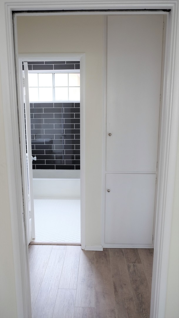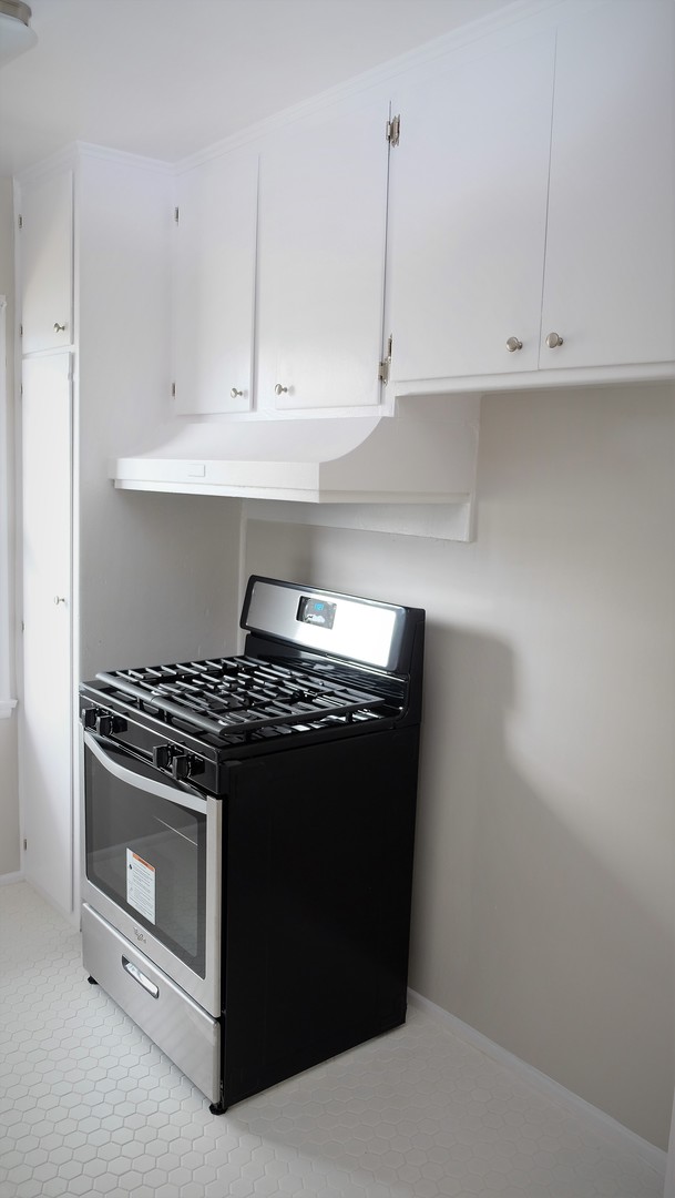 This nicely updated 1 bedroom, 1 bathroom apartment come with new Alder Springs laminate floors, New two tone paint throughout, brass nickel handles/fixtures throughout, Grey quartz in kitchen with nice cabinets and a new wall water faucet. A pantry is also located in the kitchen along with a new stainless steel stove and range hood to match.