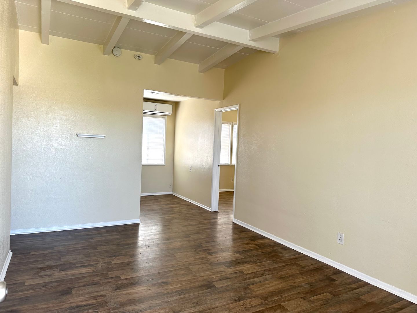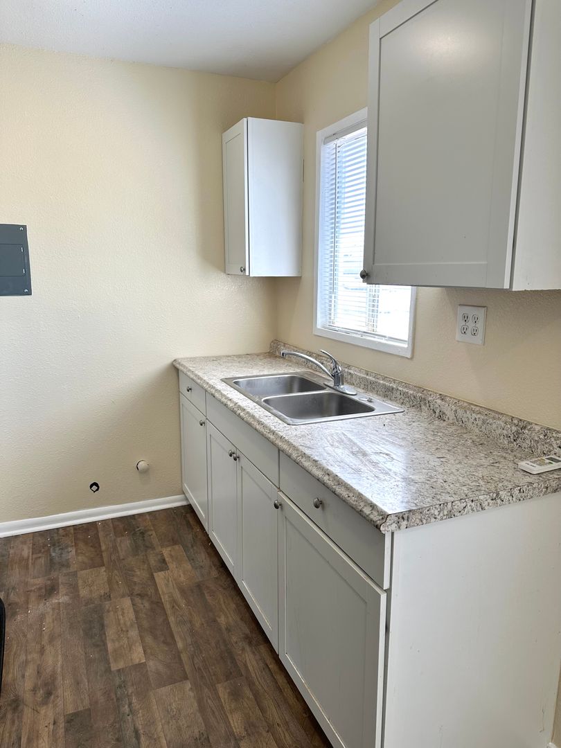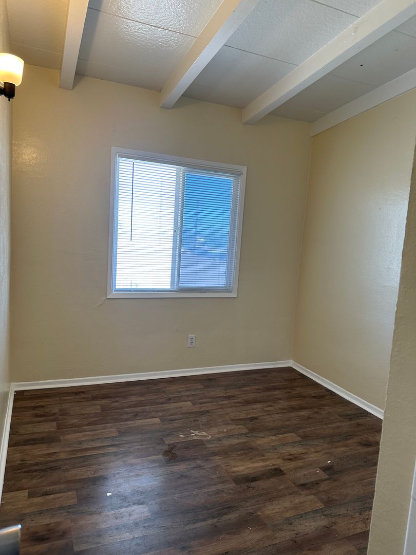 2 bedroom, 1 bath. Upstairs unit. Fresh paint throughout. Comes with a stove and mini split AC/Heat. Water and trash included.