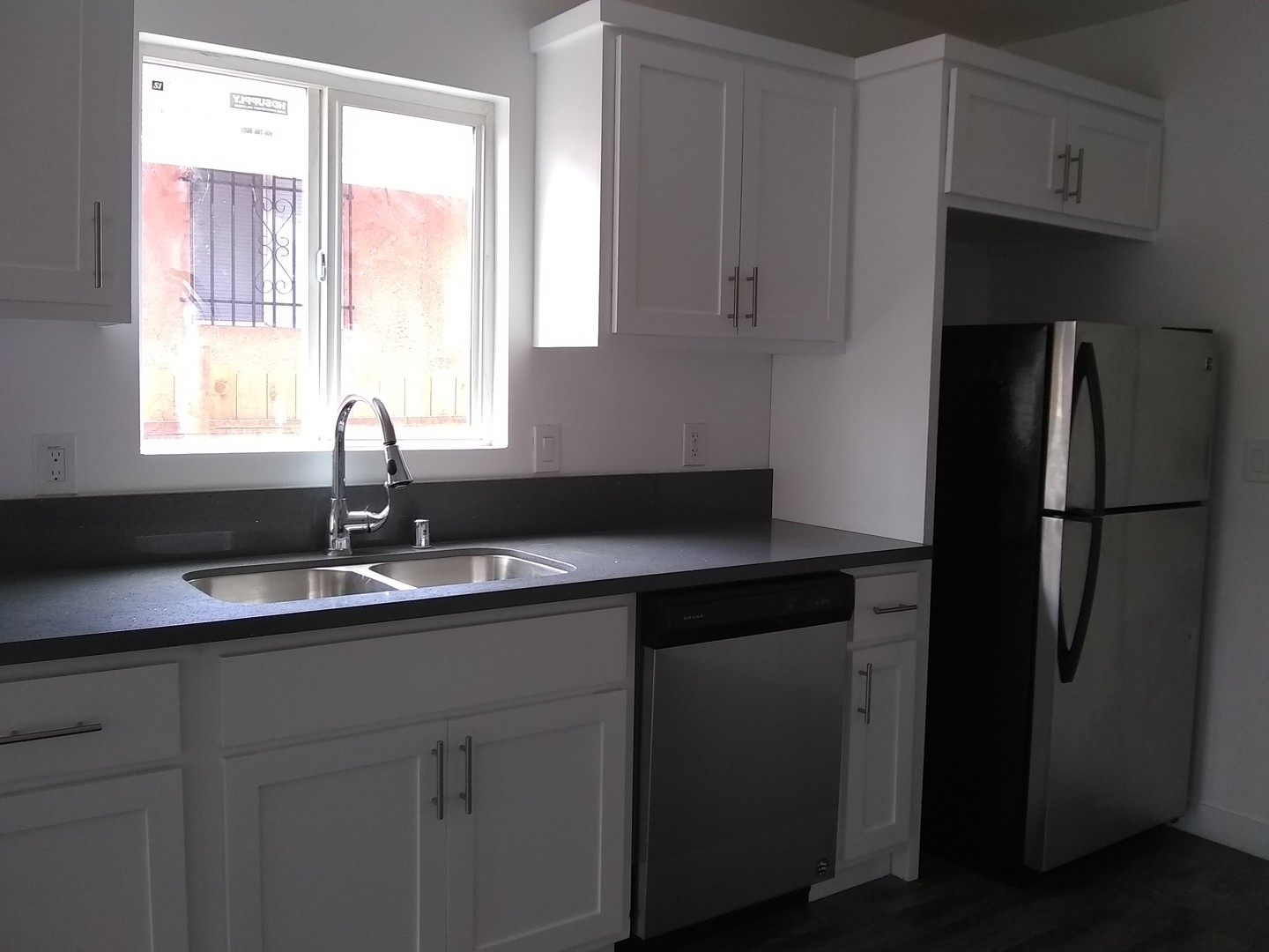 Welcome to this stunning 3-bedroom, 2-bathroomin the View Park- Windsor Hills neighborhood. This thoughtfully designed unit offers a comfortable and convenient living space for anyone seeking to be in hustle and bustle of LA. 1 parking space is included. Very spacious and newly renovated! Kitchen includes white shaker style cabinets, solid countertops, and stainless steel gas stove and refrigerator. Laminate hardwood floors throughout. Close to public transportation and easy access to the 110FWY, you'll be on your way to a game at BMO Stadium near USC or a concert at SoFi in Inglewood.