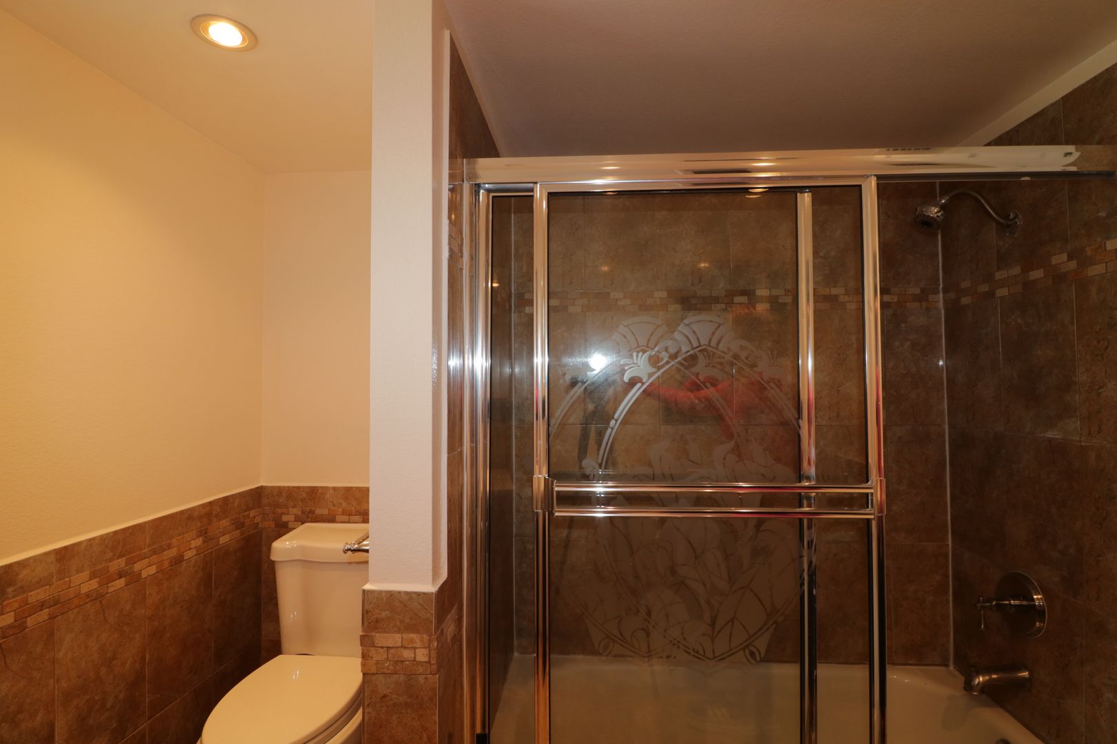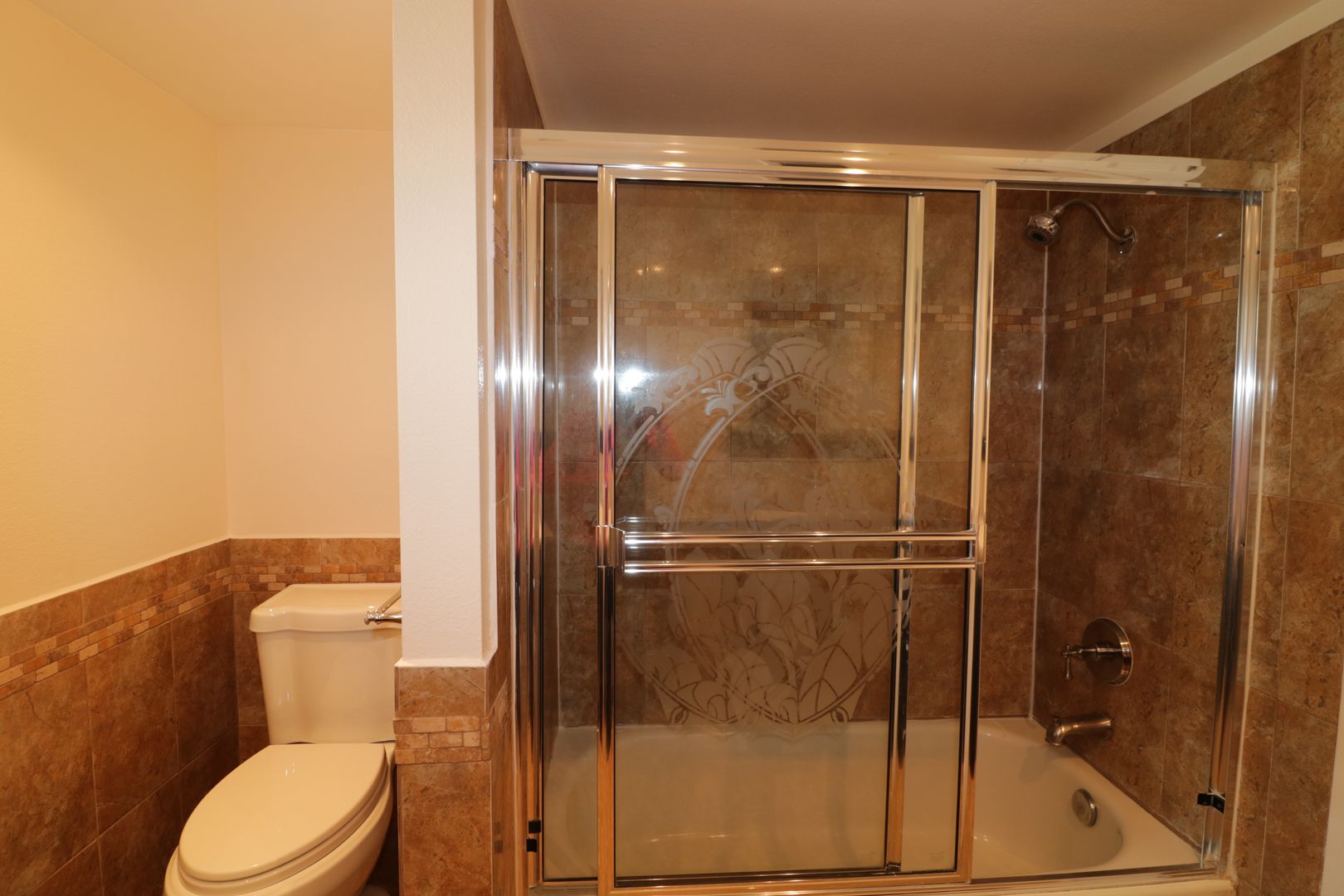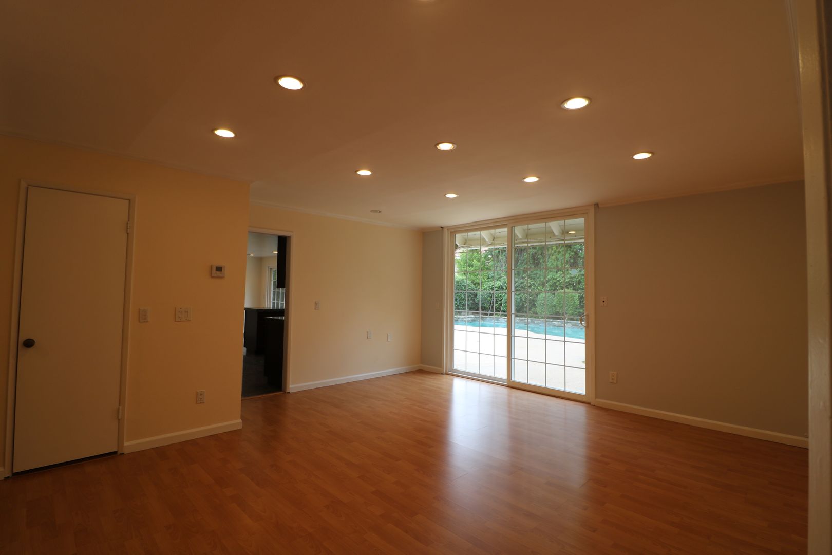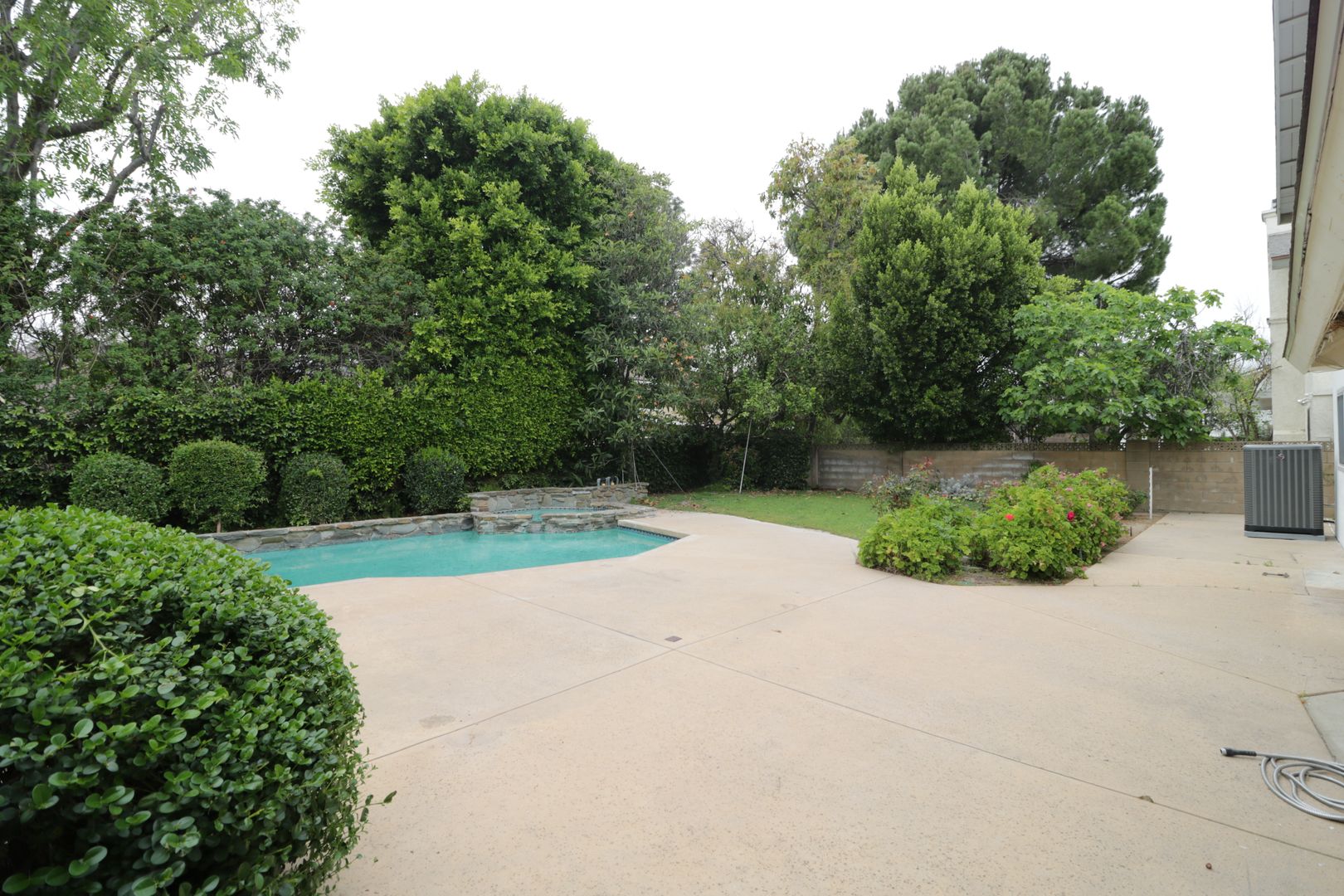 - Private backyard with mature trees. a pool, jacuzzi and grassy area.