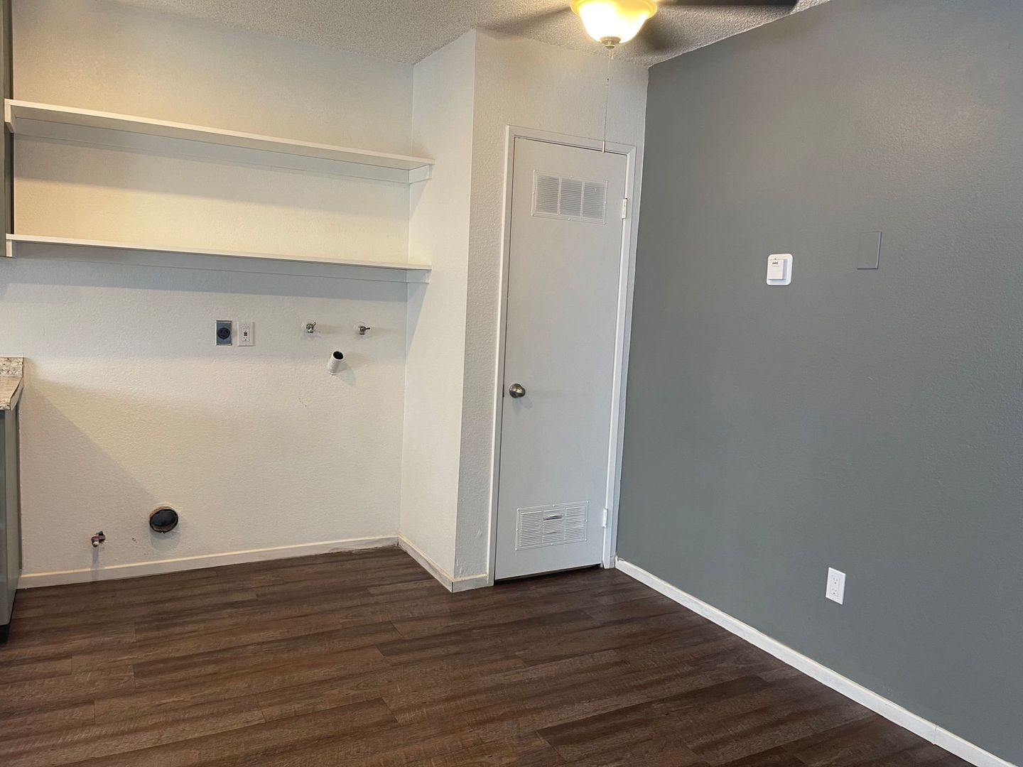 Newly renovated 2 bedroom, 1 bath with fenced back yard. Convenient indoor laundry hookups with gas or electric connections. Recessed lighting throughout. Water and trash included. Tenant responsible for paying electric and gas.