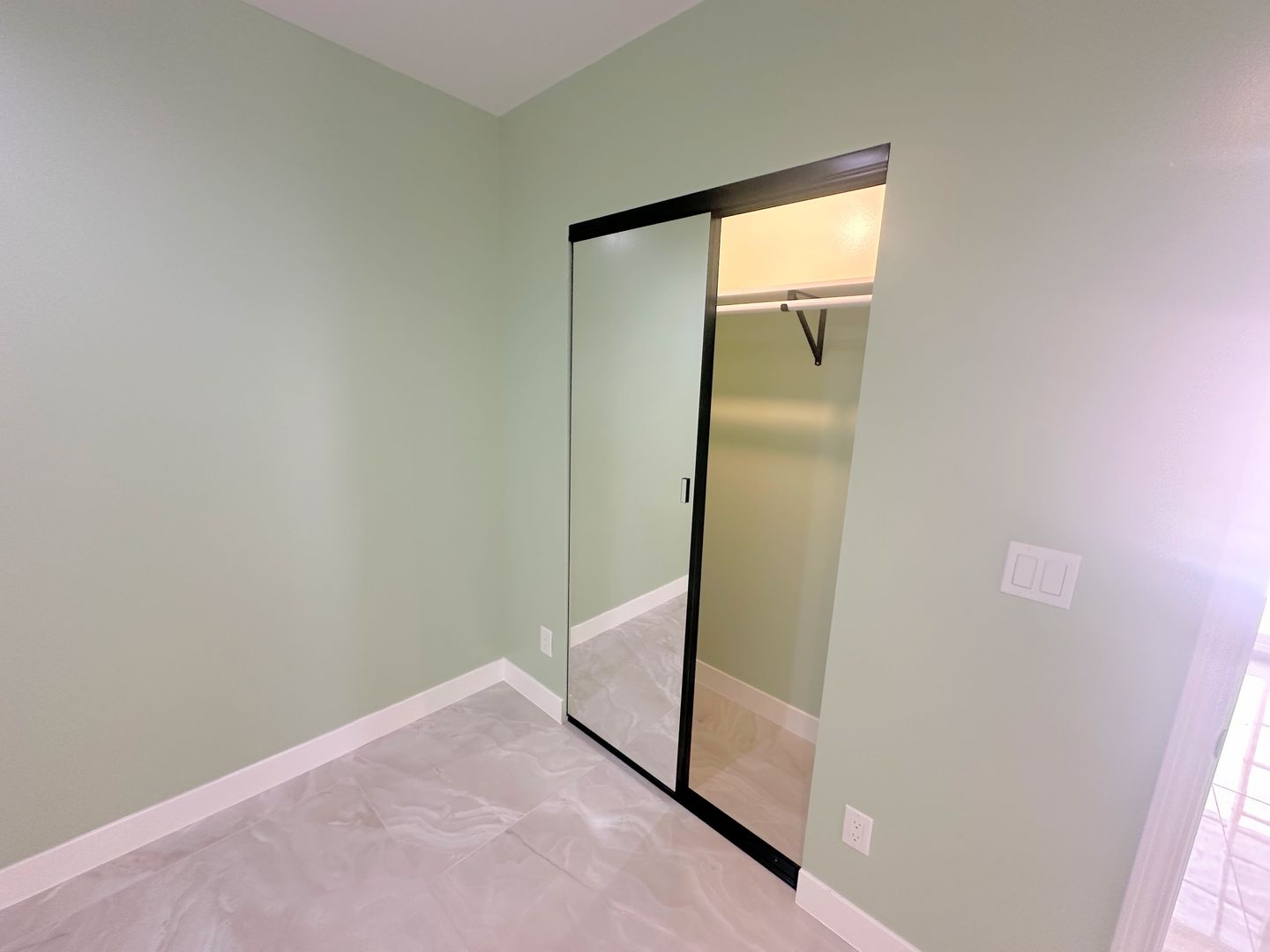 The bedroom provides a peaceful retreat with ample space and natural light, while the updated bathroom features modern fixtures and elegant design elements. Every aspect of the home has been tastefully remodeled, blending functionality with beautiful, curated details.