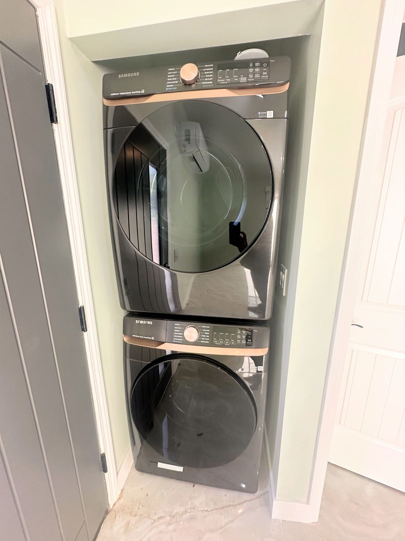 The contemporary kitchen is equipped with refrigerator and stove/oven, complemented by stylish cabinetry and sleek finishes ideal for everyday living. The home includes a new in-unit washer and dryer for ultimate convenience, along with air conditioning to ensure year-round comfort.