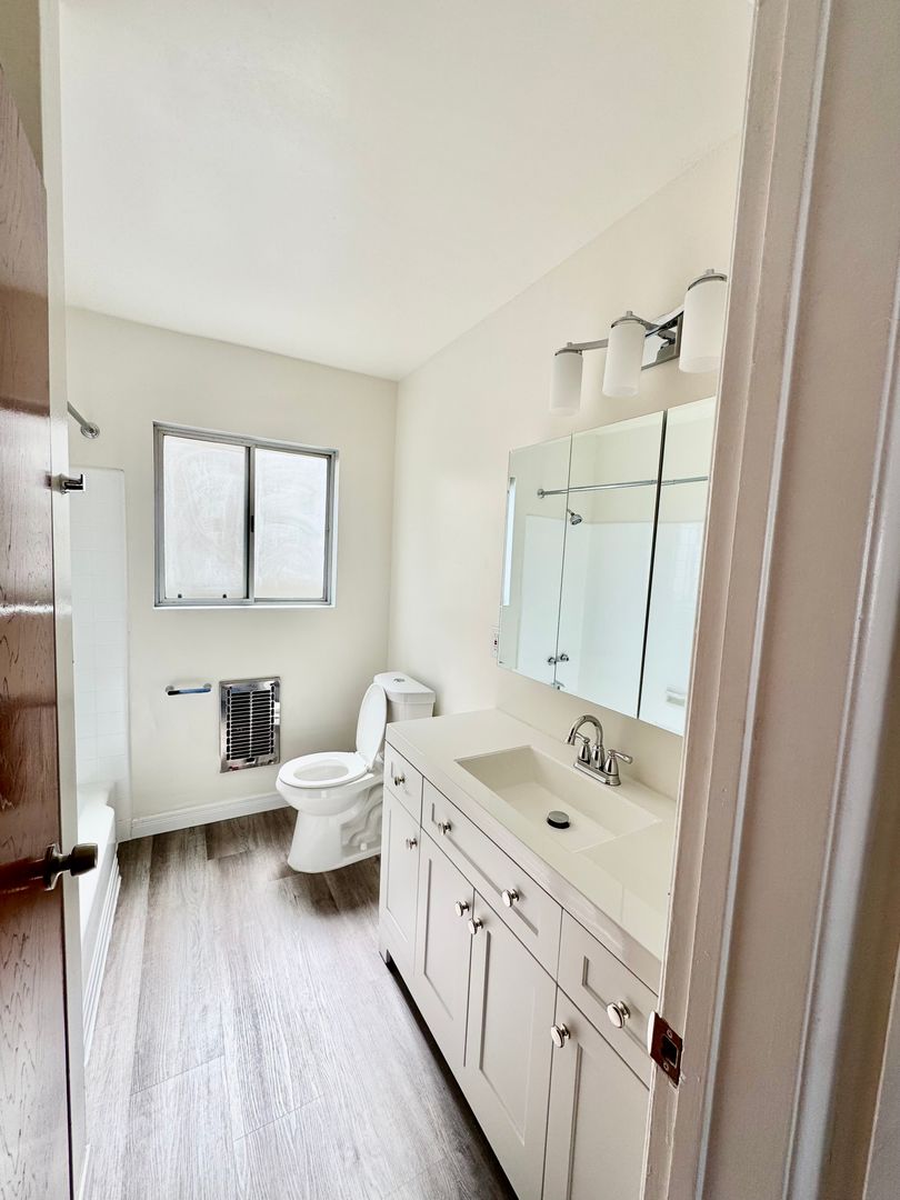Welcome to our charming 1 bedroom, 1 bathroom apartment located in the heart of Los Angeles, CA. This cozy unit features new wood floors throughout, a convenient parking space, and a refrigerator included for your convenience. The apartment also boasts a stove top for all your cooking needs. With its great location, you'll have easy access to all the best that Los Angeles has to offer. Don't miss out on this fantastic opportunity to make this apartment your new home!