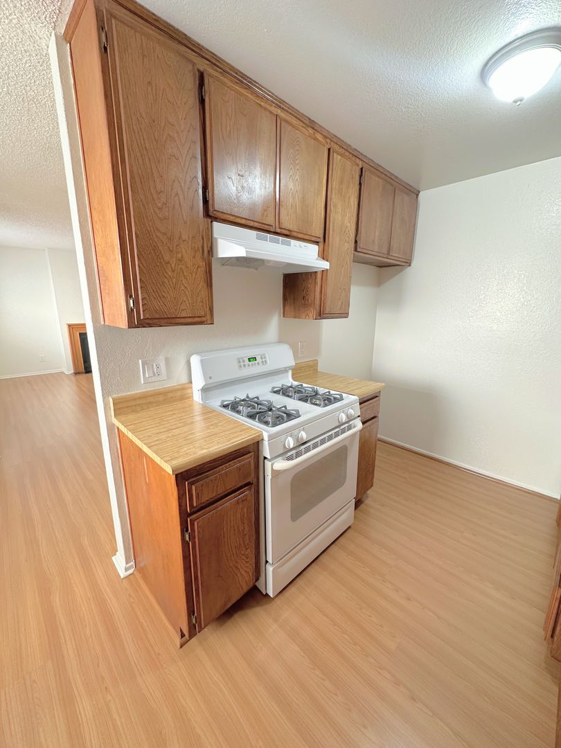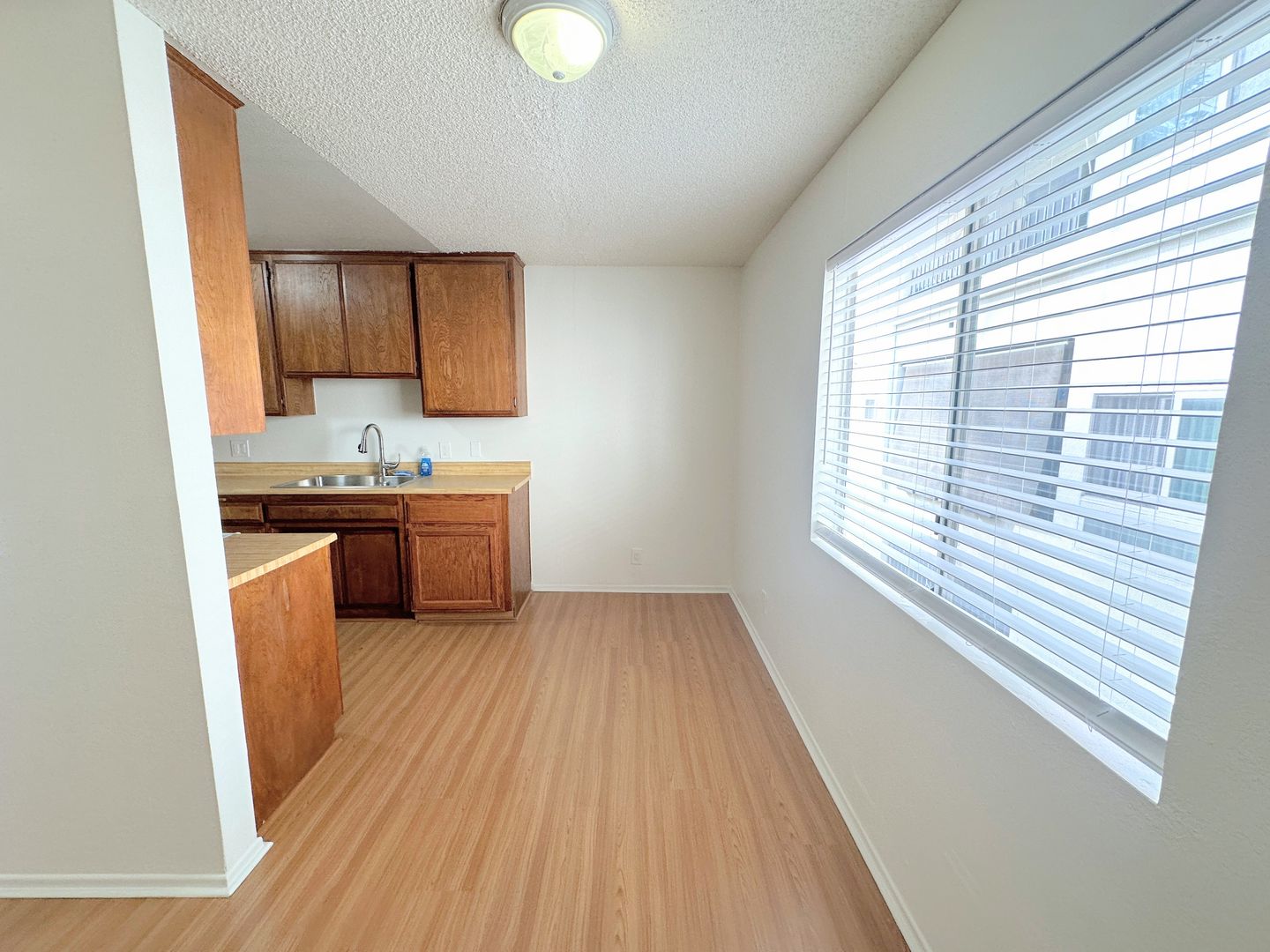This unit has laminate floors, new paint, one bathroom, central A/C and heat, and a kitchen with a stove and adjacent dining area. 1 parking space included.