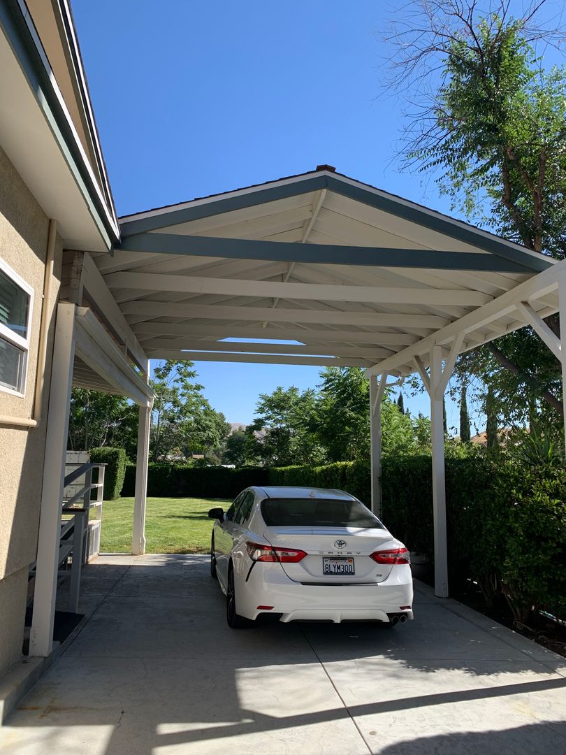 The fenced yard is beautifully landscaped with large grassy area and carport for 2 cars and extra storage.