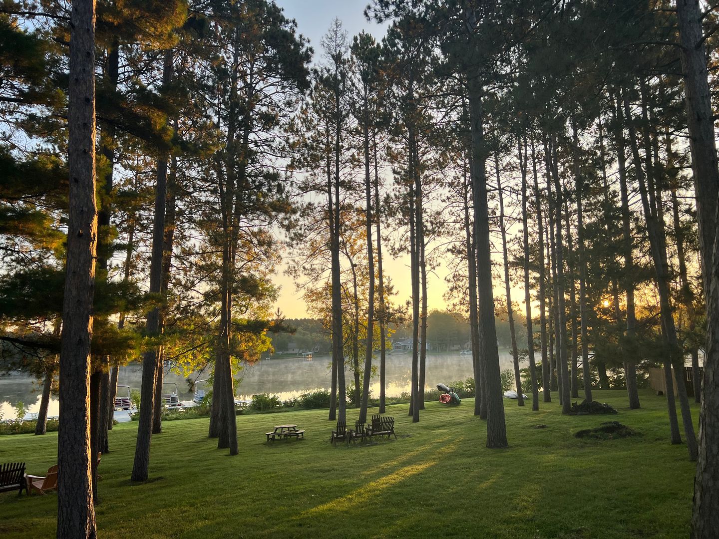 Beautiful sunrise views and water front access on the Fish Hook River. Towering mature Norway Pines and spacious park-like setting. All new construction. Large two car direct access garage with slab heat. Single family home with no common walls in a professionally managed planned unit development community. The best of lake front living without the maintenance hassles.